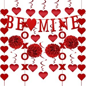 21Pcs Valentines Day Decor Valentine’s Day Decorations Set Pre-Assembled Hanging Heart Swirls BE MINE Love Heart XO Garlands Banner for Home Classroom Office Wedding Party