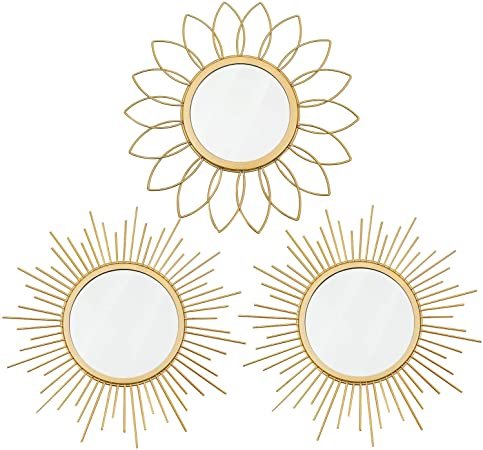 3 Pack Gold Mirrors for Wall Metal Sunburst Wall Mirrors Home D?cor Decorative Hanging Wall Art for Living Room Bedroom Entryway