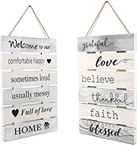 8X10 Inch Antique Solid Wooden 2 Sides Printing Inspirational Home Kitchen Farmhouse Wall Decor Signs-Welcome to Our House Faith Love Quotes Signs