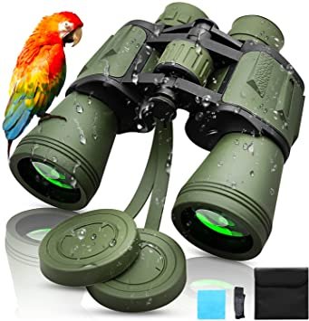 Binoculars for Adults – 20×50 Compact HD High Powered Binocular Low Light Night Vision Waterproof 26mm Large Field Binoculars for Bird Watching Stargazing and Planets Hunting Travel Outdoor Sports