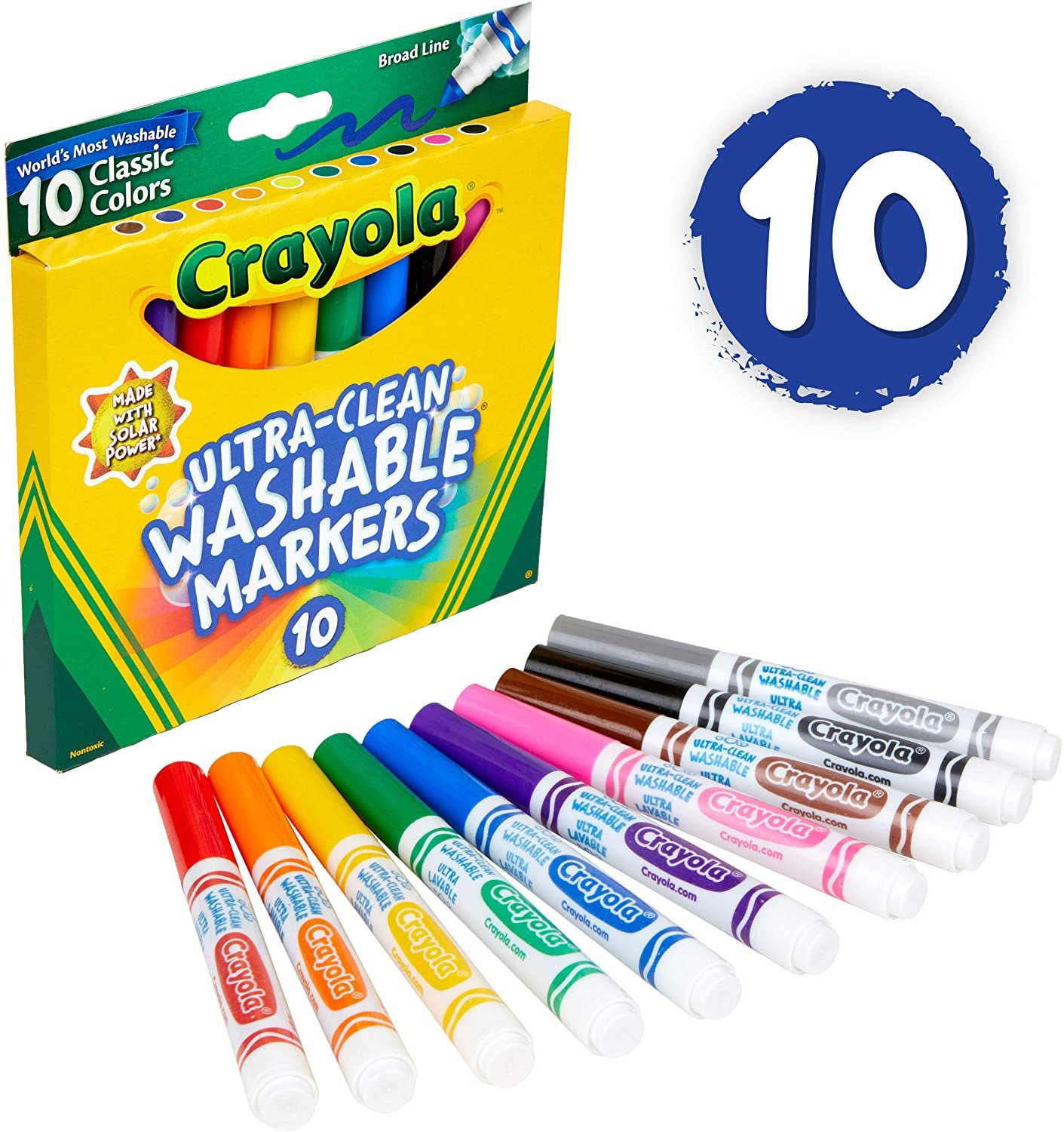 • CRAYOLA MARKERS: Features 10 Ultra Clean Markers in classic colors that are perfect for the classroom