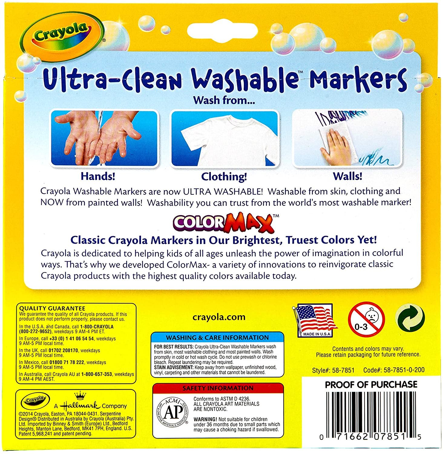 • WASHABLE MARKERS: Crayola Washable Markers are washable from skin, clothing and now from painted walls