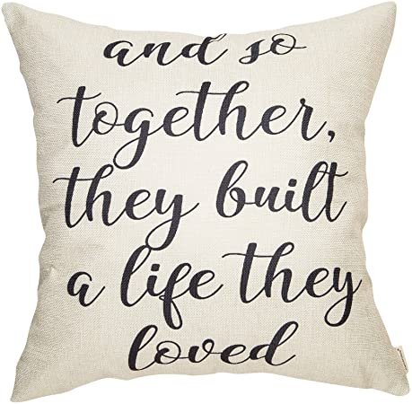Fahrendom and So Together They Built a Life They Loved Farmhouse D?cor Family Decoration Sign Cotton Linen Home Decorative Throw Pillow Case Cushion Cover with Words for Sofa Couch, 18 x 18 in