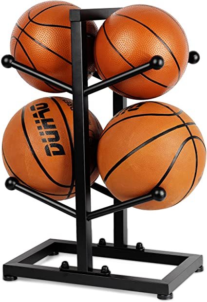 Fitlyiee 2-Layer Double-Sided Basketball Organizers Metal Ball Storage Rack Sports Storage for Indoor Outdoor