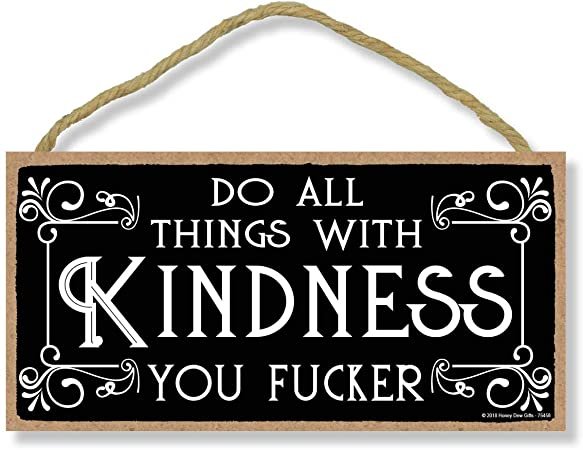 Honey Dew Gifts Inappropriate Funny Do All Things with Kindness You Fucker 5 inch by 10 inch Hanging Wall Art, Decorative Wood Sign Home Decor