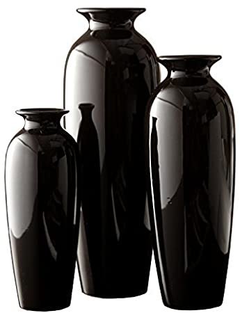 Hosley Set of 3 Black Ceramic Vases. Ideal Gift for Wedding or Special Occasions for Use in Home Office Decor Spa Aromatherapy Settings O9