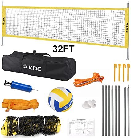 KAC Portable Volleyball Sets, Outdoor Volleyball Net System for Outdoor Beach Backyard, FIVB Nets Standard with Height Adjustable Aluminum Poles