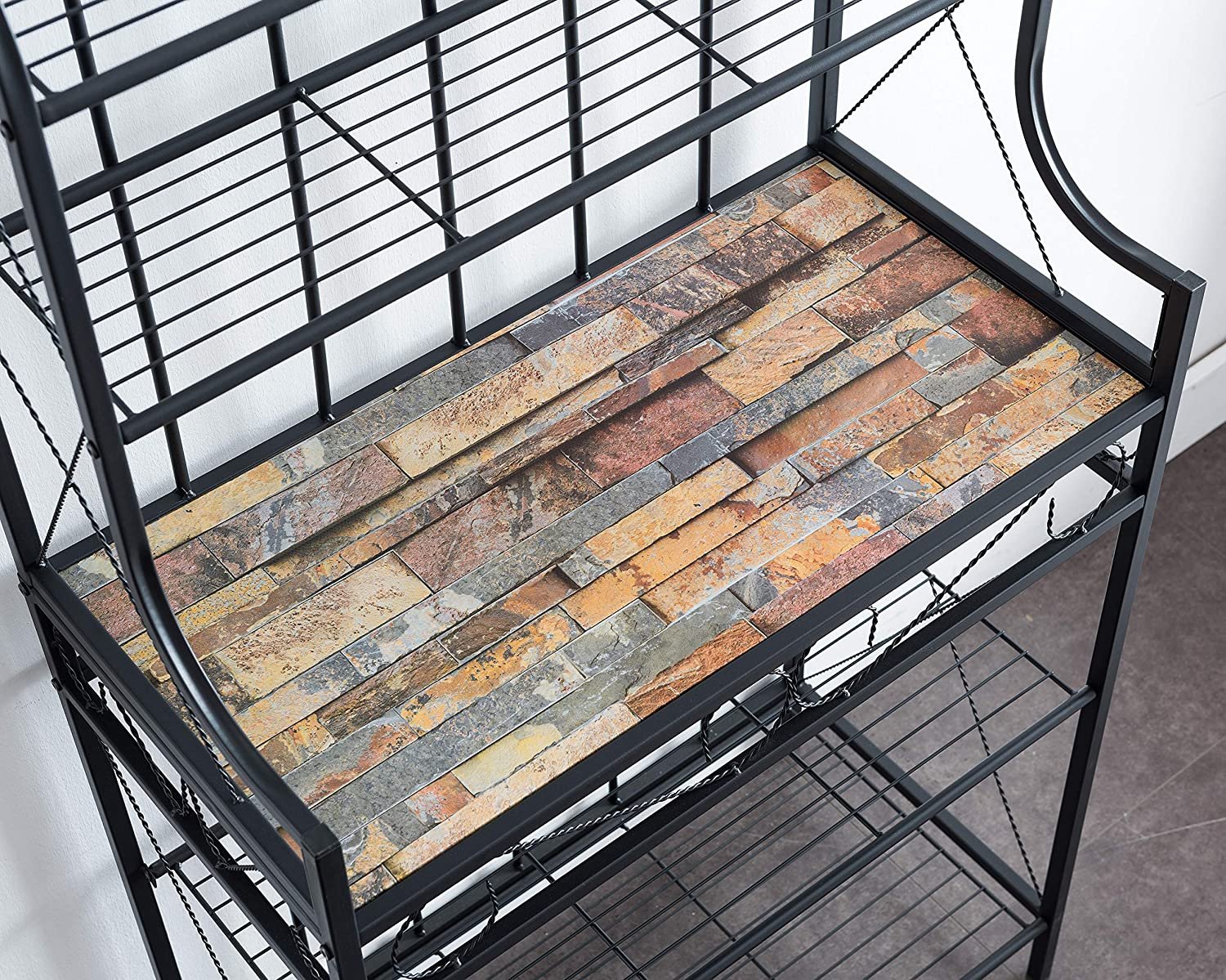 Kings Brand Furniture – Black Metal/Faux Stone 5-Tier Kitchen Storage Bakers Rack