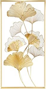 Lulu Home Metal Wall Decor, 39″ X 20″ Golden Ginkgo Leaf Wall Hanging Decor with Frame, Golden Metal Art Wall Sculpture for Living Room, Office, Study, Large