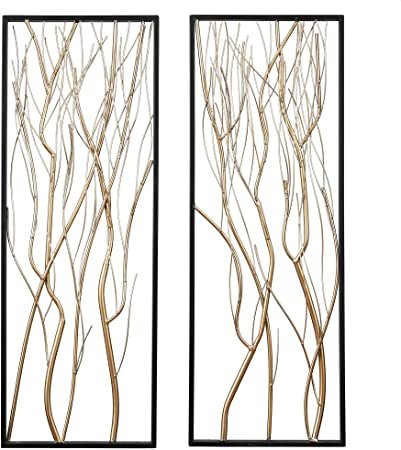 LuxenH?me 2 Pcs Large Metal Gold Branch Wall Decor with Frame, Modern Wall Hanging Sculptures Nature Art Home Decorations Set of 2, Hanging for Living Room Bedroom Kitchen,36 inch Gold/Black