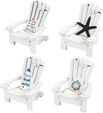 Mini Adirondack Beach Chairs for Coastal, Ocean, Nautical Theme Home Bathroom Decor, Ornaments (4 inch, Set of 4)