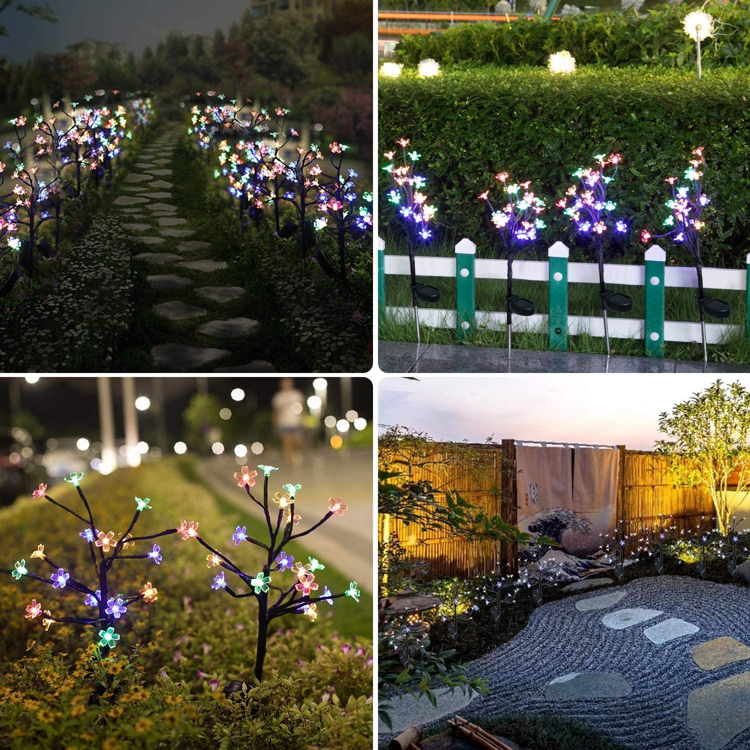 - ☀【Beautiful Bright Solar Garden Lights】Jack & Rose Solar decorative Lights with Super pretty 20 LEDs Cherry Blossom glow a multicolored light to your yard, with flash and steady on lighting modes, The colored solar fairy lights provide soft lighting and make a wonderful addition to any yard or patio. A good choice in party or holiday seasons.