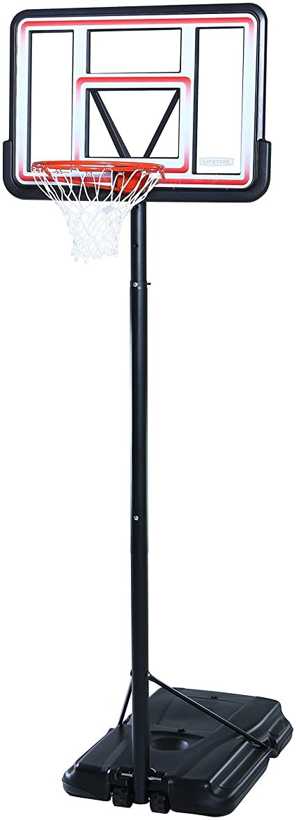 Pro Court Height Adjustable Portable Basketball System, 44 Inch Backboard, Red/White