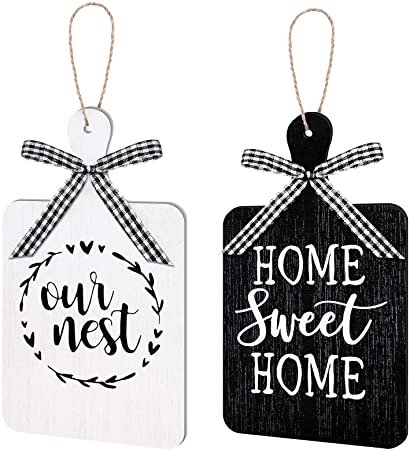 Purpeak 2 Pieces Wooden Tiered Tray Decor Home Sweet Home Our Nest Cutting Board Sign Farmhouse Wood Hanging Wall Art Sign Rustic Home Sign for Home Dining Living Room Bar Cafe Decoration