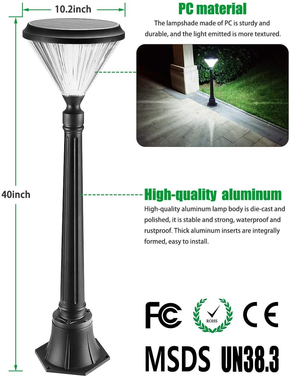 • Weather resistance: High-quality die-cast aluminum and PC material can withstand all kinds of severe weather conditions. Our solar lights have obtained FCC, CE, RoHS, MSDS, UN38.3 certifications.