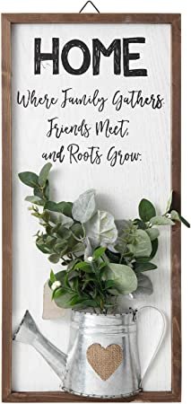 TERESA’S COLLECTIONS Large Modern Farmhouse Wood Sign for Home Decor 21 x 10 inch, Vertical Rustic Gather Signs with Artificial Eucalyptus for Living Room, Wall Art Decorations