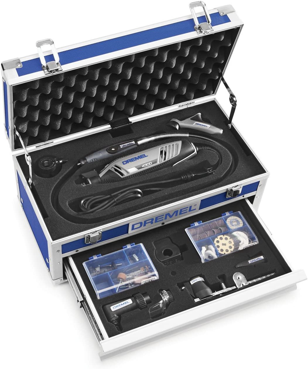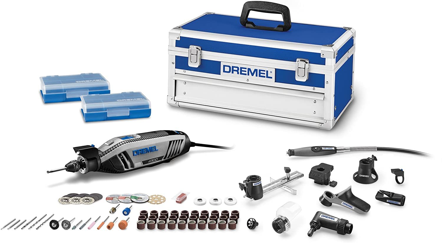 - The Holiday Platinum Edition – offers the highest value. Kit includes 4300 high-performance rotary tool, nine attachments including the Flex shaft attachment, 64 Genuine Dremel accessories, and a storage case!